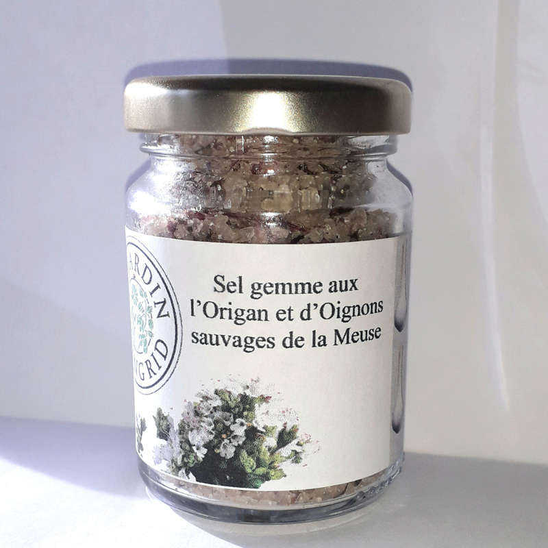 Mes aromates sont mêlés au sel gemme – sel fossile sans traitement chimique ni additif, un sel qui se trouve à 200 mètres sous terre, toutes les variétés de sel aromatique sont labellisés Meuse & Merveilles, en pot de 95g.